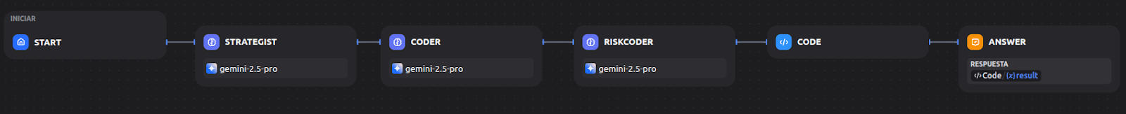 Start → Strategist → Coder → RiskCoder → Code → Answer